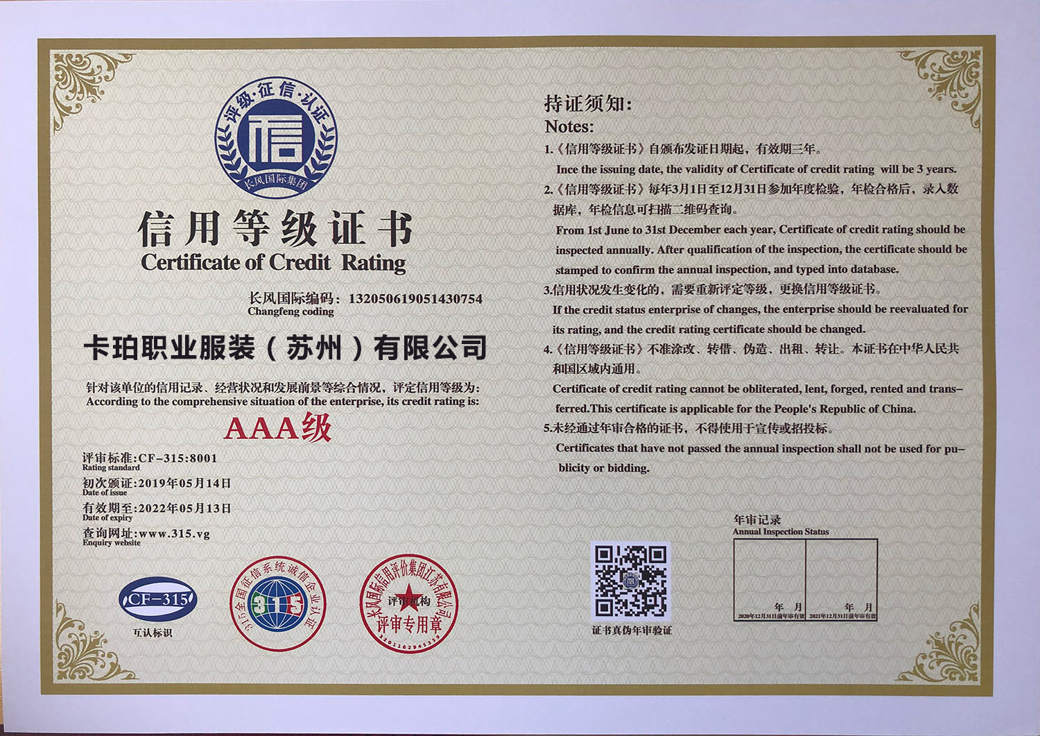 卡珀職業服裝(蘇州)有限公司是一家專為企業定制職業裝的服裝公司,是AAA信用企業,獲得ISO9001、ISO14001、ISO18001體系認證,并獲得中國校服10大品牌。公司成立于2008年...
